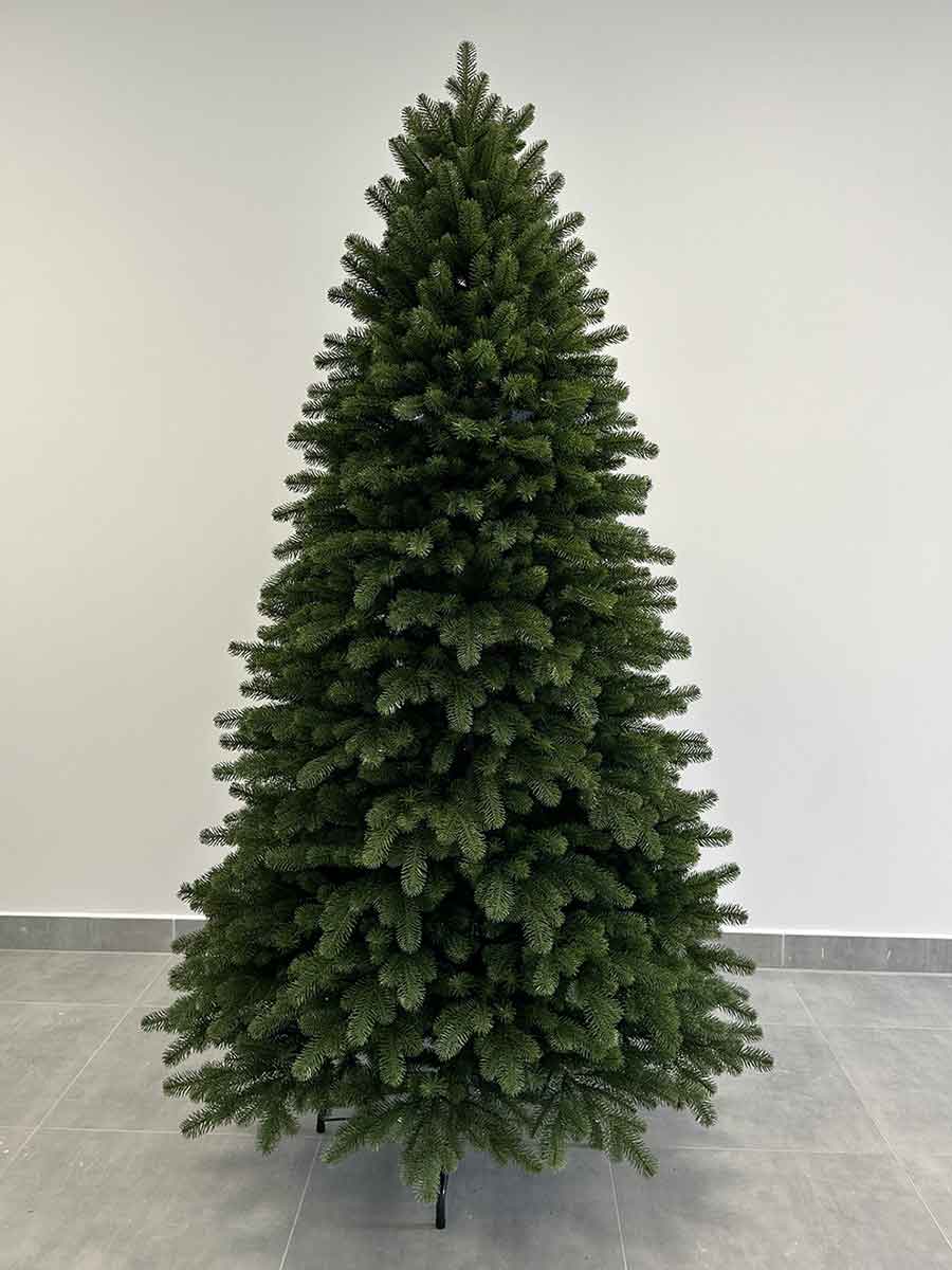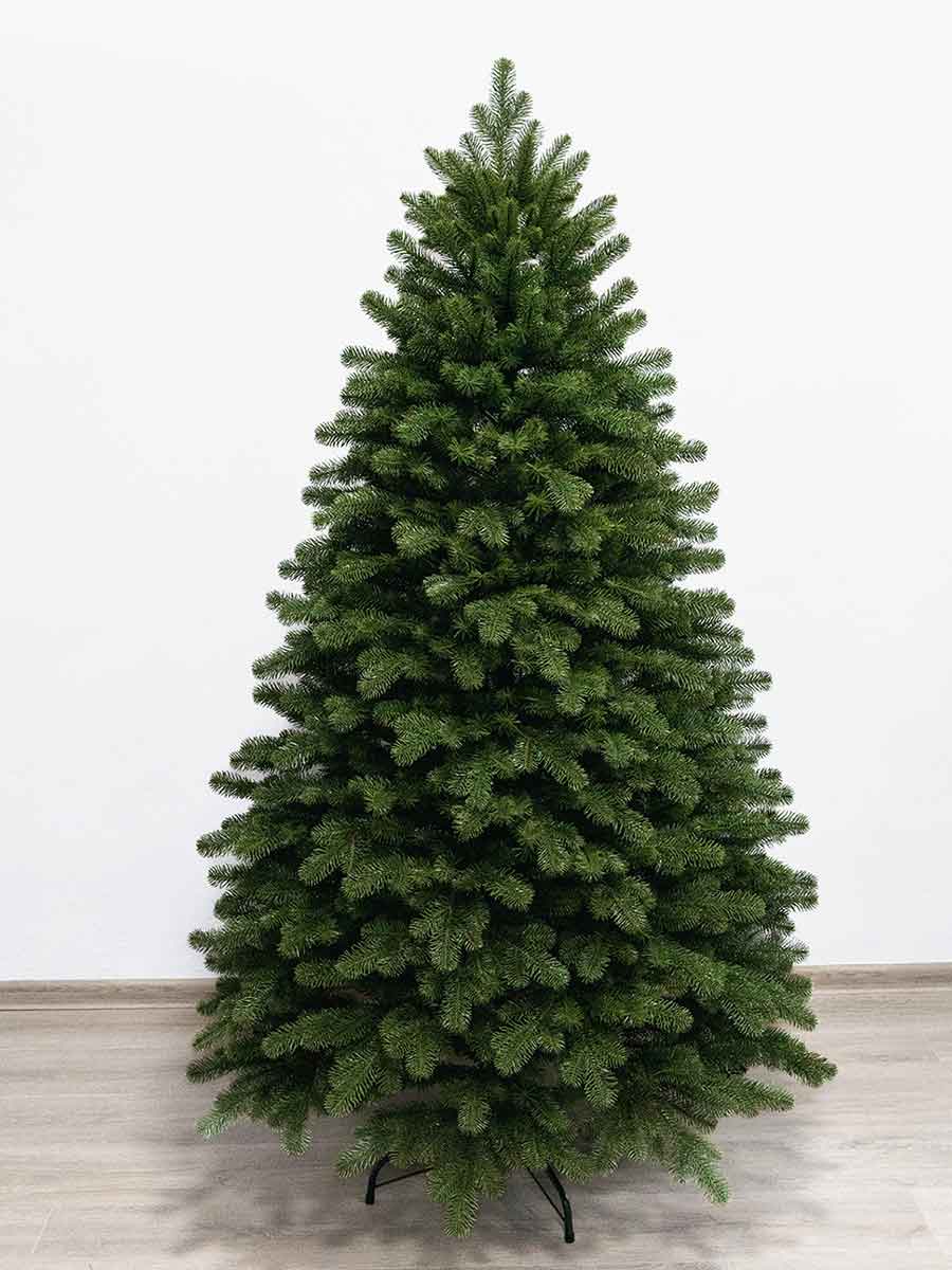 Ялинка штучна зелена виготовлена на 100% з литих гілок, змотаних ниткою. Стовбур обмотаний ПВХ плівкою. Комплектується металево підставкою. Висота від 1,0 м до 2,5 м. Запакована в картонну коробку або в поліетеленовий рукав (по бажанню замовника).